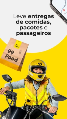 ضاعف دخلك كسائق شريك مع 99! استخدم سيارتك أو دراجتك النارية أو الفان أو مركبتك النفعية لتقديم خدمات النقل (مثل 99Pop و 99Plus و 99Taxi) أو نقل الركاب بالدراجة النارية مع 99Moto. كما يمكنك القيام بخدمات التوصيل عبر 99Entrega و 99Food. قد مع 99 وعزز أرباحك.