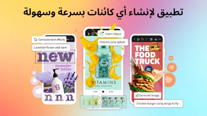 مع Adobe Express، أصبح تحقيق الرؤى الأكثر جرأة أمرًا بسيطًا. تجاوز حدود التحرير التقليدي باستخدام ميزة الملء التأسيسي المبتكرة، التي تمكّنك من إضافة أو إزالة أو استبدال العناصر والأشخاص في صورك بمجرد وصف ما تريده، لتحصل على نتائج لم تكن تتخيلها. اختبر سرعة وفعالية الإجراءات السريعة التي تتيح لك إزالة الخلفيات المعقدة، وإنشاء تعليقات توضيحية للفيديو، وتوليد رموز QR، وتحويل الصور إلى GIF، أو تغيير أحجام المحتوى بلمسة واحدة. كما يمكنك صياغة قوالب مخصصة قابلة للتحرير، من منشورات شبكات التواصل الاجتماعي إلى الكتيبات والبطاقات، بمجرد إدخال وصفك، لتبدأ من حيث انتهى خيالك.