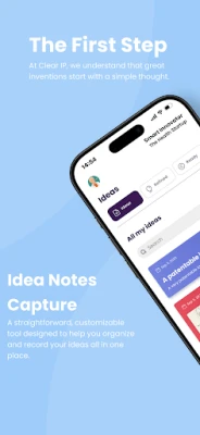 مع Clear IP، تبدأ رحلتك بتقييم ذكي وممنهج. تتيح لك "حاسبة نقاط الفكرة" تقدير مدى حداثة واختراعية فكرتك بسرعة، مما يمنحك رؤية واضحة قبل المضي قدمًا. ثم، يأتي دور "مركز إنشاء الأفكار" الذي يرشدك عبر سلسلة من المطالبات المصممة بعناية لمساعدتك في بلورة جوهر ابتكارك، من غرضه إلى تطبيقاته المحتملة. نحن ندرك أن أمان أفكارك هو أولويتك القصوى؛ لذا، يضمن Clear IP حماية ملكيتك الفكرية بشكل حصري لك داخل "خزانة الأفكار الآمنة". هذا لا يحافظ على أفكارك منظمة ومتابعة عبر بطاقات ملونة مميزة فحسب، بل يوفر لك بيئة سرية وموثوقة، مما يعزز فرص نجاح المشاريع الناشئة بشكل كبير.