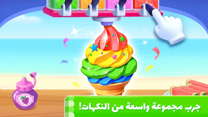 ادخل عالمًا ساحرًا حيث لا حدود لخيالك في صناعة أشهى مثلجات الصيف! تقدم لك تجربة BabyBus هذه فرصة فريدة لابتكار حلوى الآيس كريم بمختلف أشكالها ونكهاتها. سواء كنت تحلم بتحضير مصاصات قوس قزح الزاهية، أو آيس كريم الفاكهة المنعش، أو حتى آيس كريم الزبادي المقلي الغريب، ستجد كل الأدوات والمكونات بين يديك لتحقيق إبداعات لا تُنسى. حوّل مطبخك الصغير إلى ورشة عمل مليئة بالمرح، حيث كل خفقة ومزج يفتح بابًا جديدًا للابتكار والمتعة.