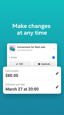 مدير إعلانات فيسبوك يتيح لك إدارة حملاتك الإعلانية بكفاءة عبر فيسبوك، انستغرام، ماسنجر وواتساب. يمكنك إنشاء وتعديل الإعلانات، ومراقبة أدائها والحصول على رؤى تفصيلية فورية أينما كنت. استعرض التنبيهات وقارن حملاتك بسهولة.