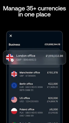يمنحك Revolut Business القدرة على إدارة أموالك بكفاءة عالمية. يمكنك التحكم في المدفوعات عبر أكثر من 35 عملة وفي أكثر من 150 دولة، مستفيدًا من أسعار الصرف بين البنوك لتوفير التكاليف. بسّط إدارة نفقات فريقك عبر إصدار بطاقات فعلية وافتراضية، مع إمكانية تحديد حدود الإنفاق وتخصيص تدفقات الموافقة لضمان الشفافية والتحكم التام. بالإضافة إلى ذلك، يمكنك أتمتة إدارة المصروفات بالكامل من خلال التقاط الإيصالات وتصنيف المعاملات بسلاسة، ثم تصدير البيانات إلى برنامج المحاسبة الخاص بك لمطابقة فورية.