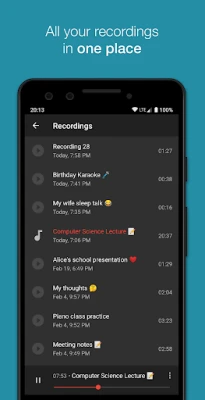 منذ عام 2012، حظي هذا الحل الصوتي بالثقة من قبل أكثر من 50 مليون مستخدم حول العالم، ليصبح أداة يومية لا غنى عنها لتوثيق اللحظات الصوتية بفعالية وموثوقية. لا يقتصر الأمر على تسجيل ما يهم، بل يوفر لك تحكمًا دقيقًا في جودة الصوت مع ميزات متقدمة مثل محلل طيف الصوت المباشر وخيارات تشفير Wave/PCM مع معدل عينة قابل للتعديل (من 8 إلى 44 كيلو هرتز). يمكنك التسجيل بسهولة في الخلفية حتى عندما تكون شاشة جهازك مطفأة، مع ضمان أداء موفر للبطارية.