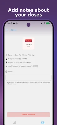 تخيل أنك لا تنسى جرعة أبدًا، ولا تتفاجأ بآثارها الجانبية. مع Theraview، هذا ليس مجرد حلم. يوفر التطبيق تذكيرات قابلة للتخصيص للجرعات المجدولة وكذلك عندما تبدأ تأثيرات الدواء في التلاشي، مما يمنحك تحكمًا غير مسبوق. يمكنك أيضًا تتبع سجل جرعاتك بسهولة وتنظيم بياناتك الطبية بشكل فعال. علاوة على ذلك، يزودك Theraview برؤى قيمة حول الأوقات المتوقعة لظهور الآثار الجانبية الشائعة كفقدان الشهية أو العصبية، ويقدر لك متى من المرجح أن تشعر بالنعاس بعد تناول جرعتك، مما يتيح لك تخطيط يومك وليلك بذكاء وخصوصية تامة، حيث تظل جميع بياناتك آمنة على جهازك دون الحاجة إلى أي حسابات خارجية.