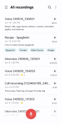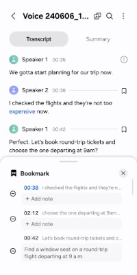 تجاوز التسجيلات التقليدية مع مجموعة متنوعة من أوضاع التسجيل المصممة خصيصًا لتناسب كل سيناريو. يمنحك وضع "العام" تسجيلًا واضحًا وموجات صوتية مرئية لتتبع المحتوى بسهولة. أما وضع "المقابلة" المبتكر، فيتيح لك تسجيل صوتك وصوت المتحدث الآخر بشكل منفصل باستخدام ميكروفونات جهازك العلوية والسفلية، مع عرض موجات صوتية مستقلة لكل صوت، مما يتيح لك إعادة تشغيل كل طرف على حدة لمراجعة دقيقة. ولإضفاء لمسة من التنظيم الاحترافي، يمكنك إضافة علامات مرجعية لأي لحظة مهمة أثناء التسجيل، مما يسهل عليك العثور على المقاطع الرئيسية أو تشغيلها مباشرةً أو تجميعها لاحقًا.
